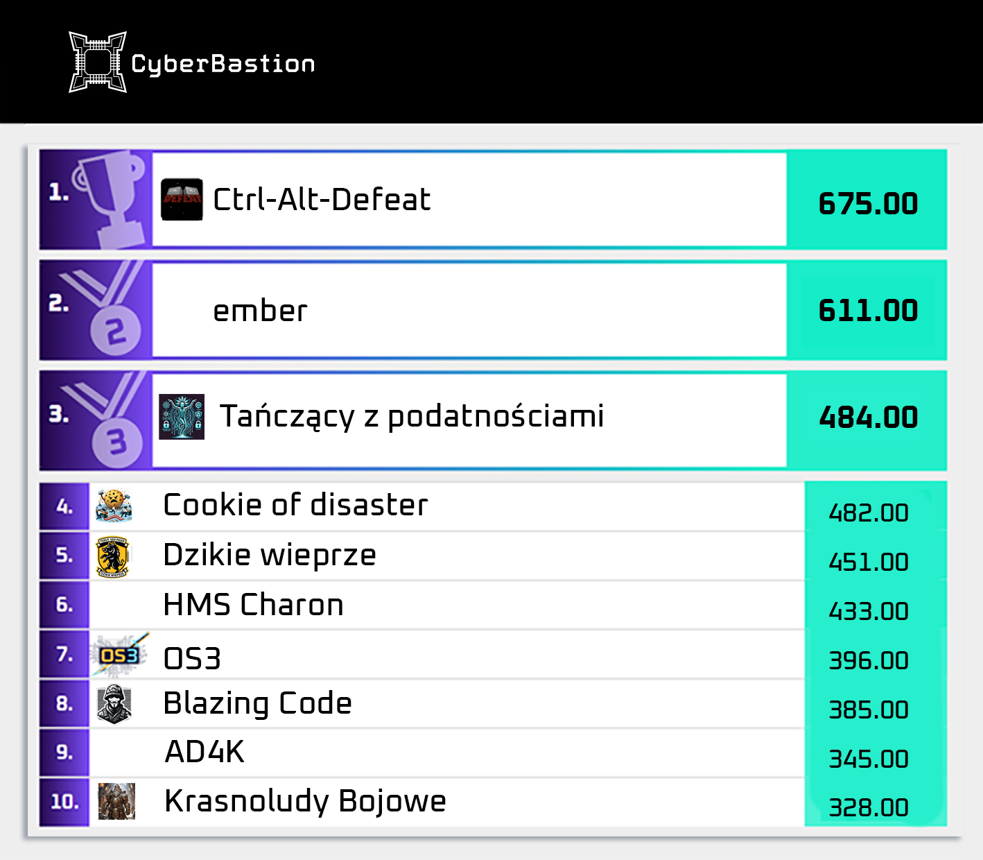 3 | Tańczący z Podatnościami | 38 | 85 | 100 | 37 | 58 | 318 |